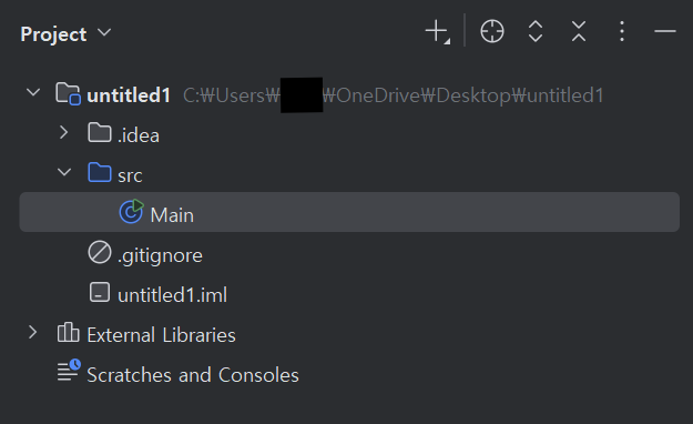 -샘플 코드인 Main.java 클래스가 이미 만들어져 있는 걸 확인할 수 있고, 자바에서 프로그램이 시작될 때는 main 메서드에서 실행이 시작된다.