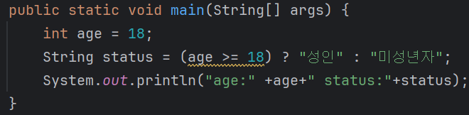 (조건식) ? 참일 때의 값 : 거짓일 때의 값;