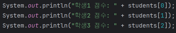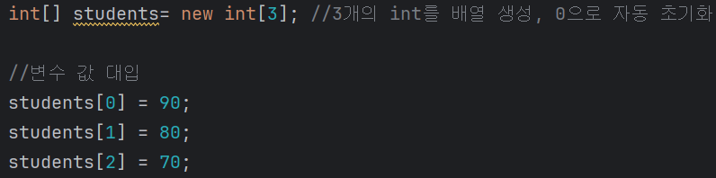 배열의 인덱스는 0부터 시작하므로 우리가 3개의 int형 변수를 생성한 students 배열의 인덱스는 0,1,2이다.
