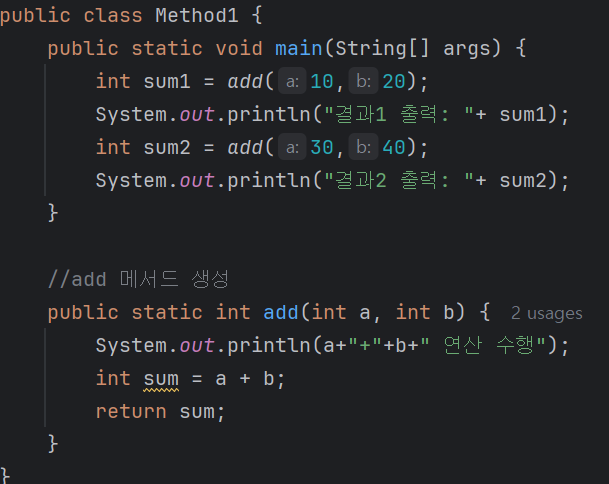 3. add 메서드 생성 및 호출 코드 예시