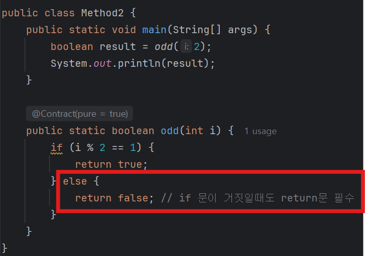 4. 출력값이 존재하는 메서드의 경우엔 무조건 출력값과 동일한 타입의 return 값이 존재해야 한다.