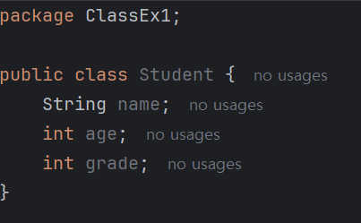 클래스 내에 name, age, grade 변수를 정의한다.