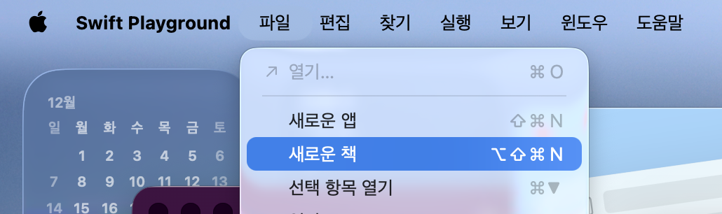 또한 Swift Playgrounds를 실행하면 여러 가지 프로젝트 템플릿을 선택할 수 있는데, 대표적으로 ‘나의 앱(My App)’과 ‘새 책(New Book)’이 있다.