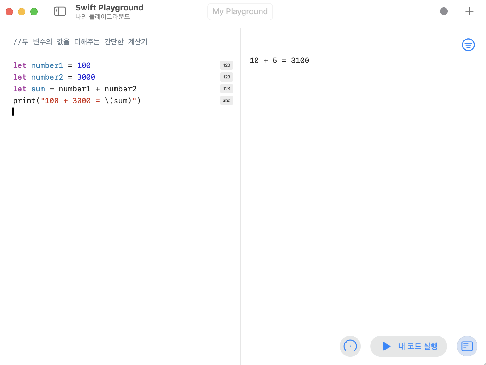 코드를 작성하고 결과를 즉시 확인할 수 있어 Swift 문법을 익히는 데 매우 효과적이다.