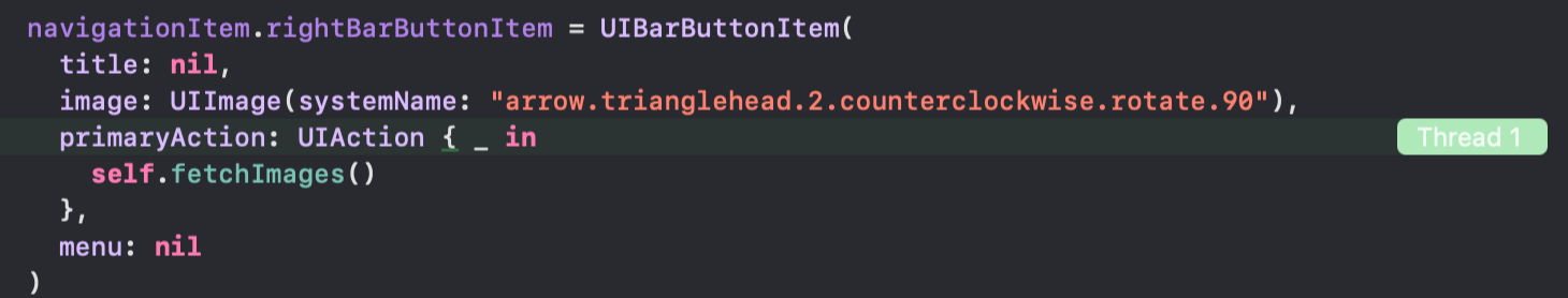 - UIBarButtonItem은 버튼이 눌렸을 때 실행할 행동(primaryAction의 클로저)을 메모리에 가지고 있어야 함